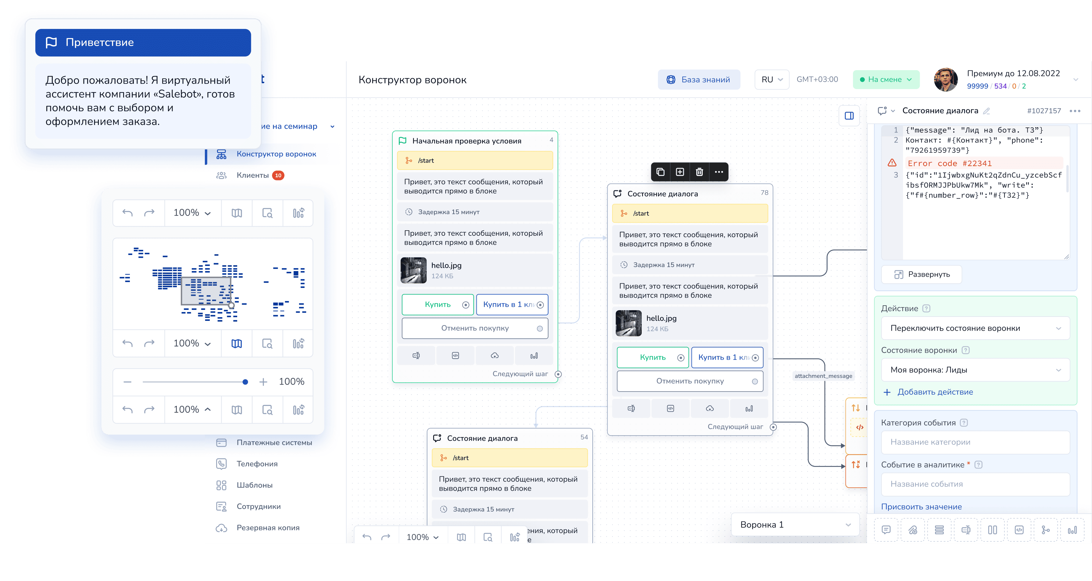 Соединяйте блоки и стрелки. Настраивайте цепочки сообщений и воронки продаж наглядно и без кода