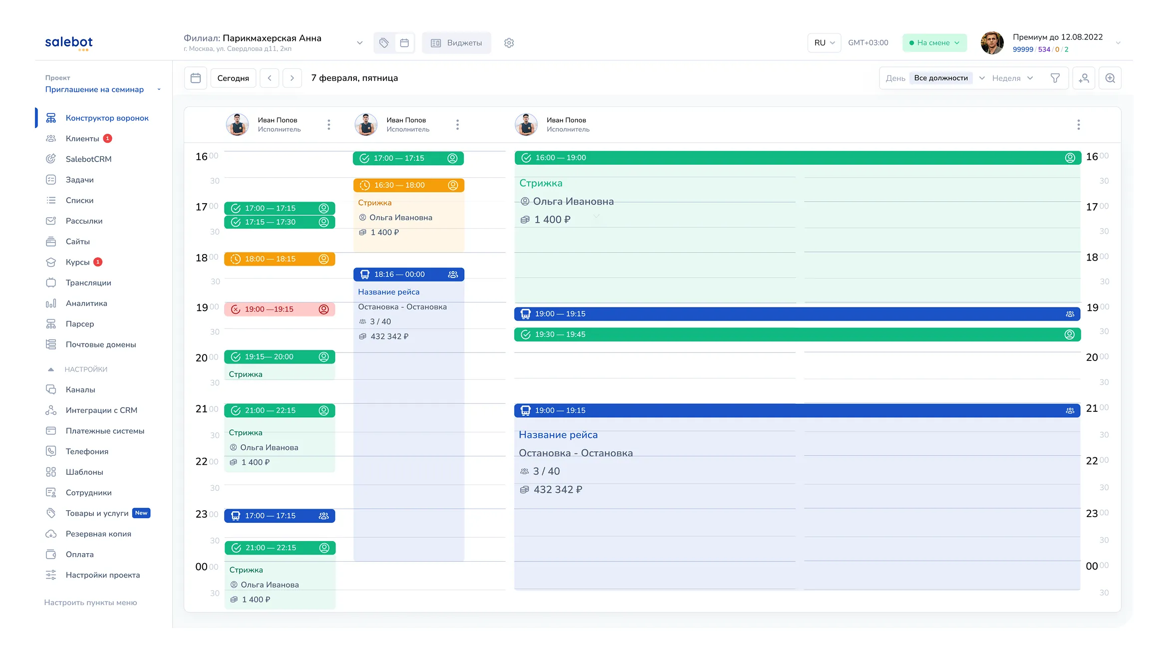 Установите график работы сотрудников. Бот предложит клиентам только свободные слоты
