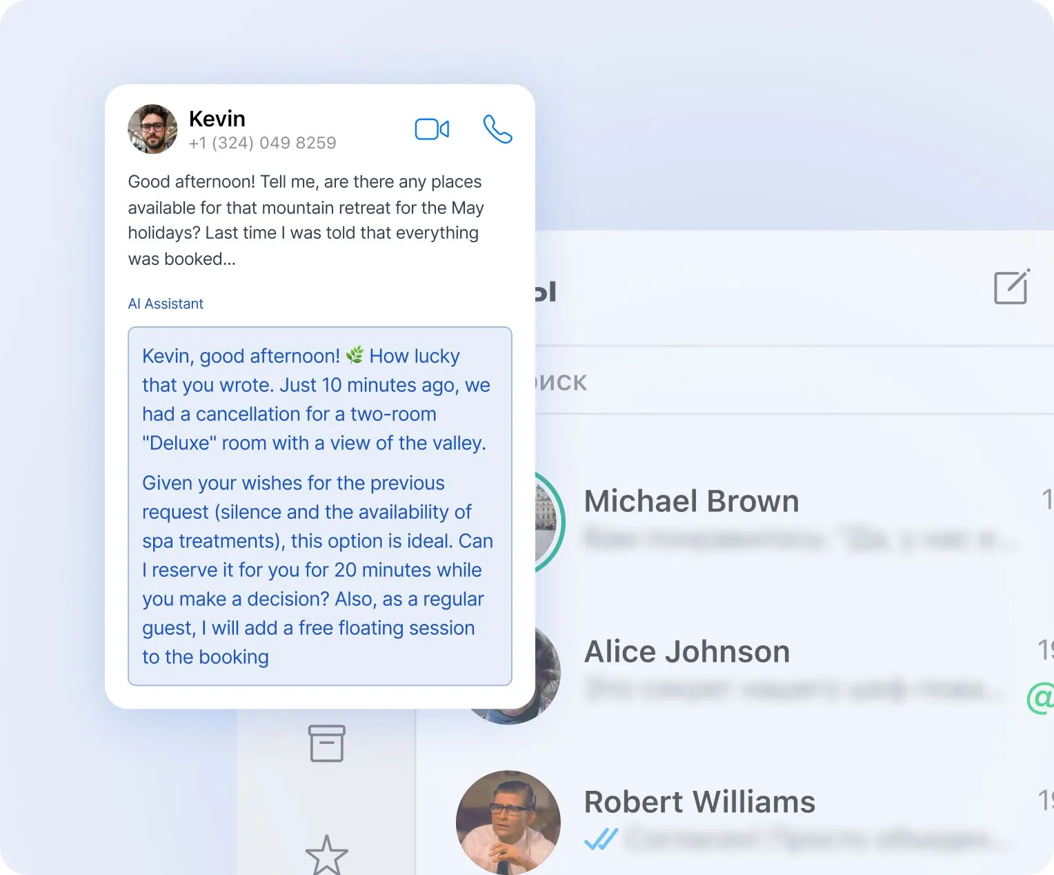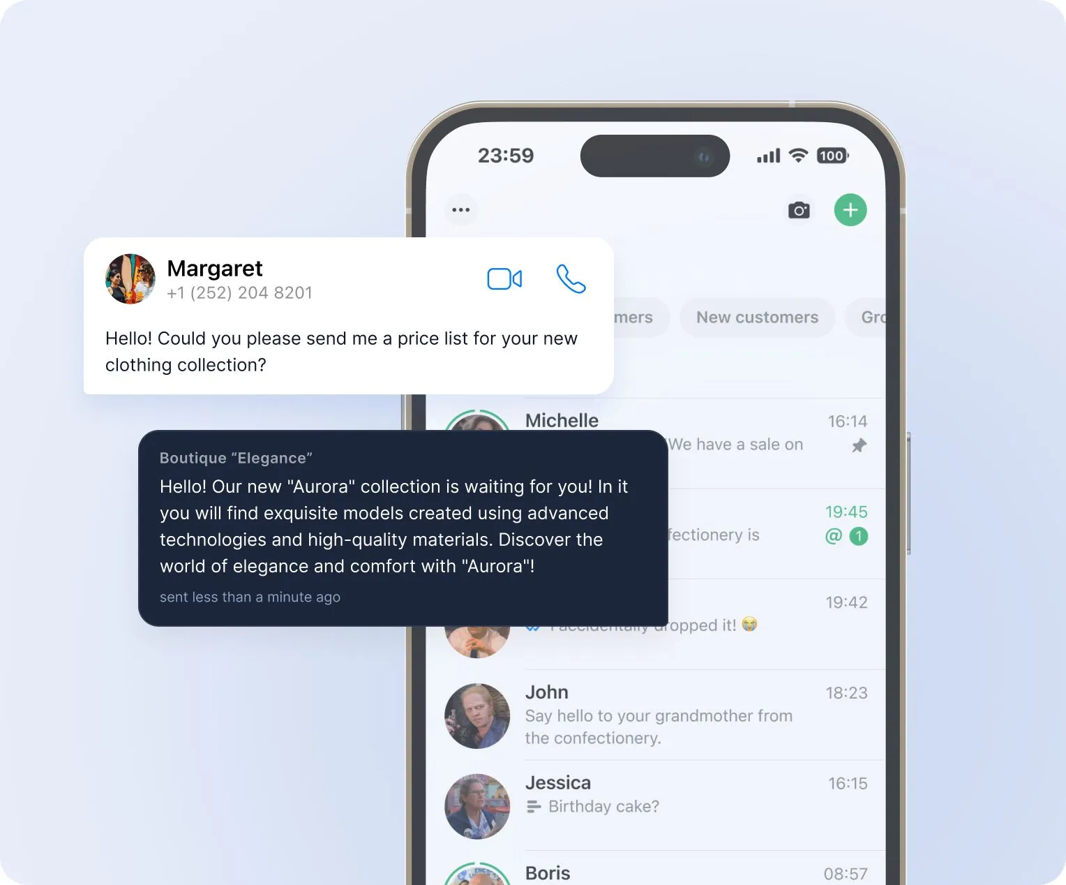 Авто-напоминания и персональные сообщения помогают поддерживать связь с клиентом