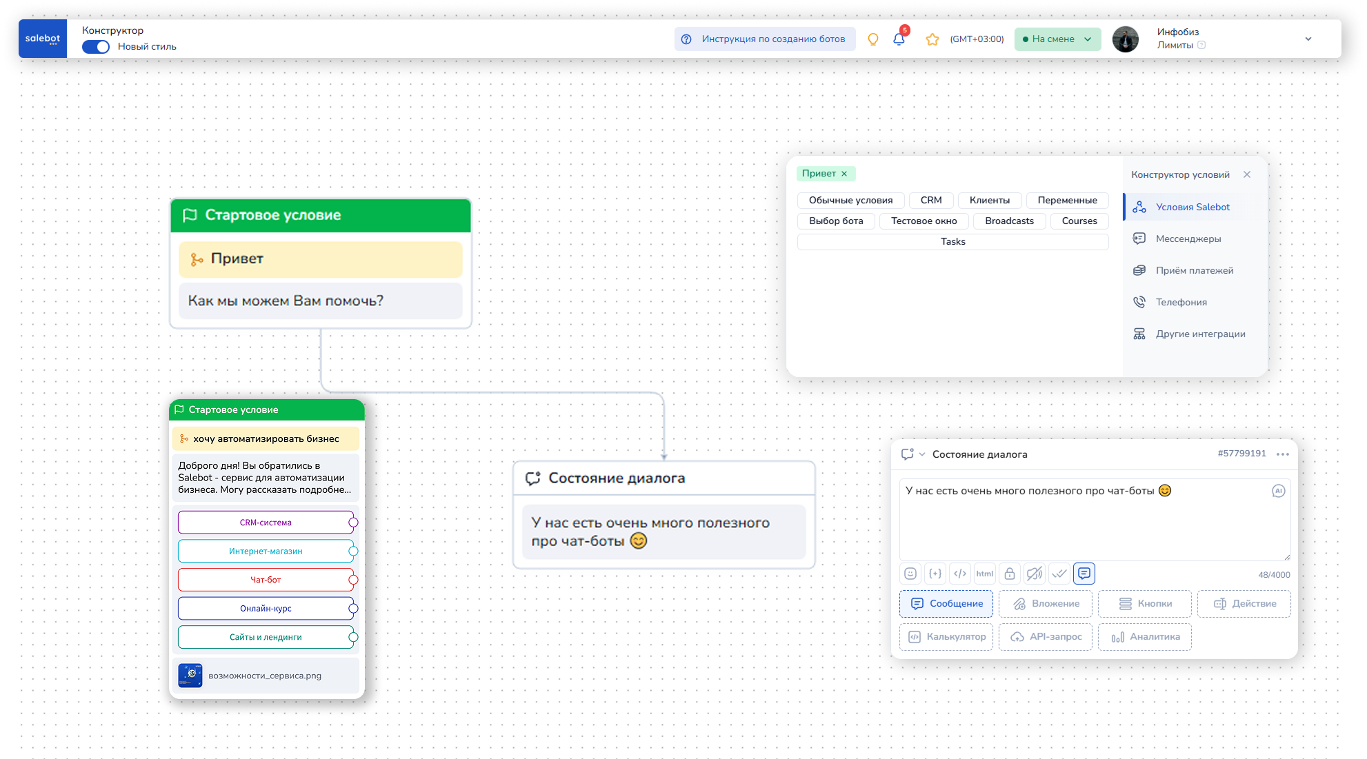 Как выглядит конструктор чат ботов Salebot