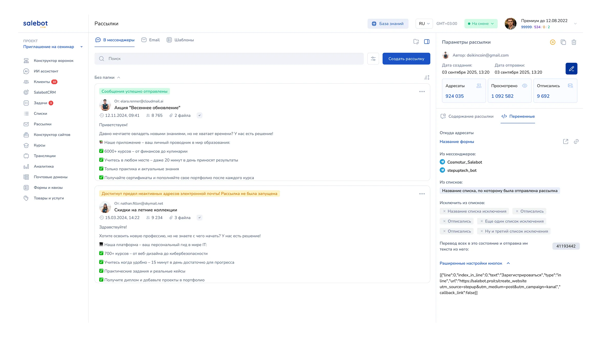 Как запустить рассылки в Salebot