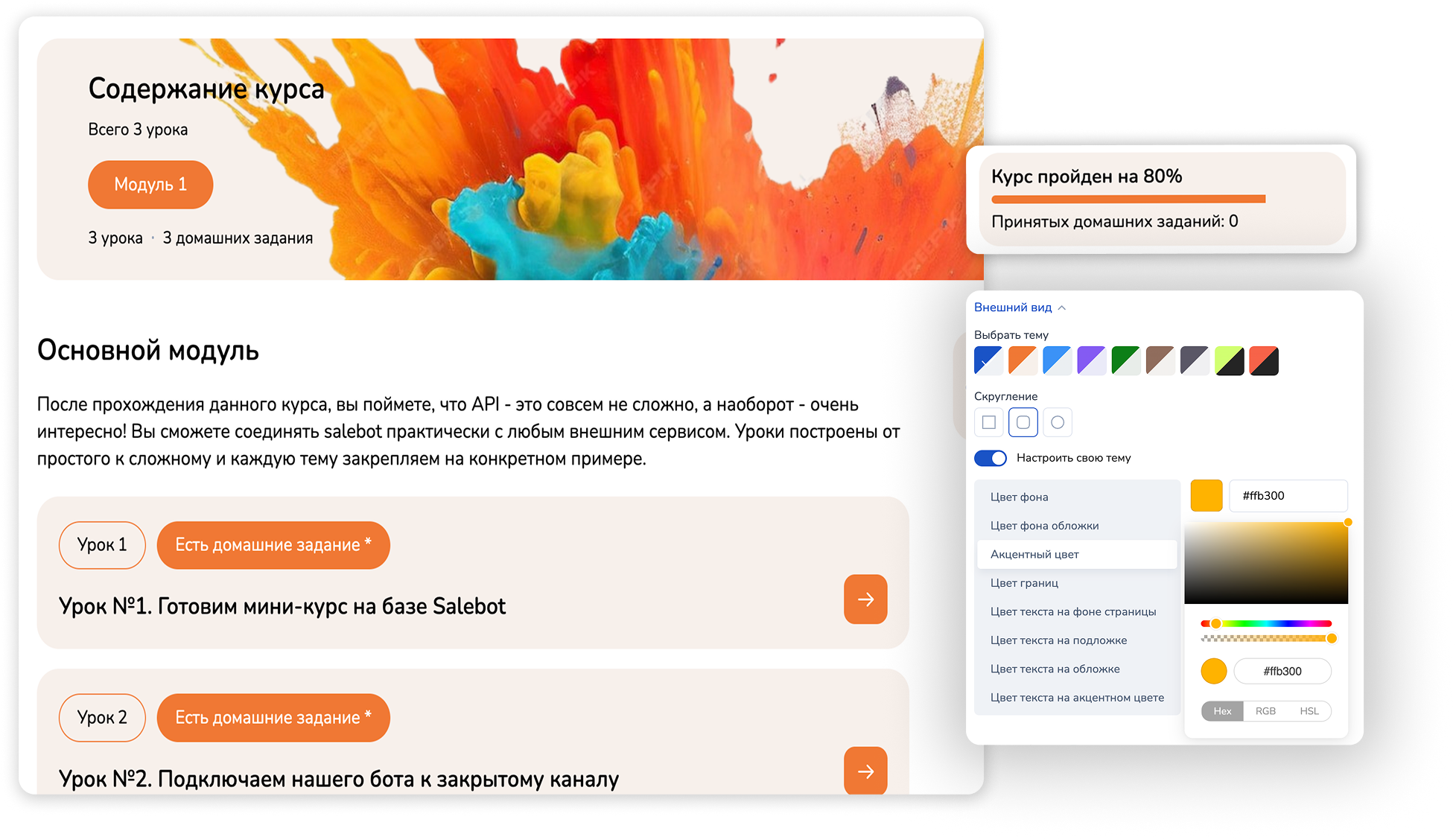 Курс и управление доступом находятся внутри Salebot. Не нужно держать отдельную LMS.
