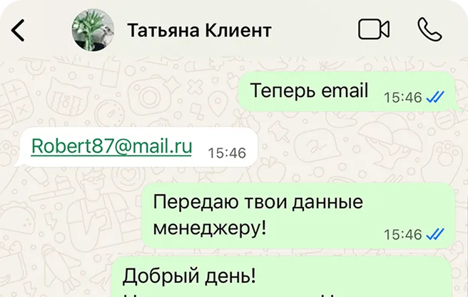Пишите клиенту в WhatsApp* по номеру в любое время
