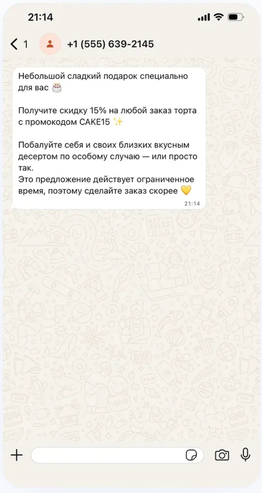 Да! Вы можете отправлять рассылки в WhatsApp*, но только с использованием заранее одобренных шаблонов сообщений. Это гарантирует корректную доставку и соблюдение правил платформы.
