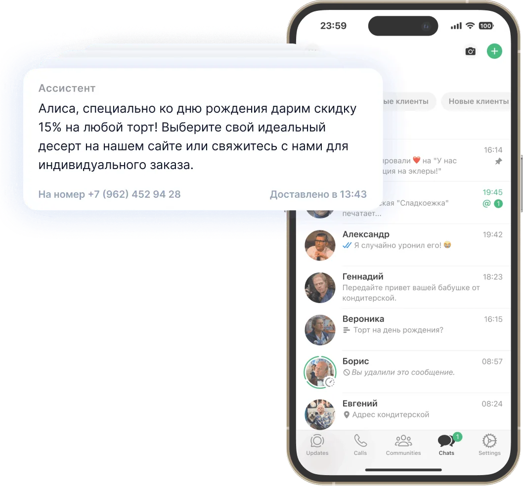 Авто-напоминания и персональные сообщения помогают поддерживать связь с клиентом